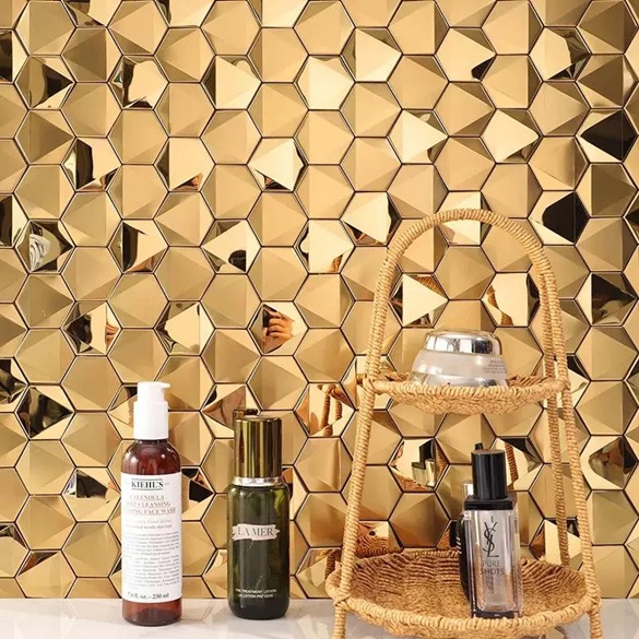 | 3D Gold Hexagon mosaic tile |